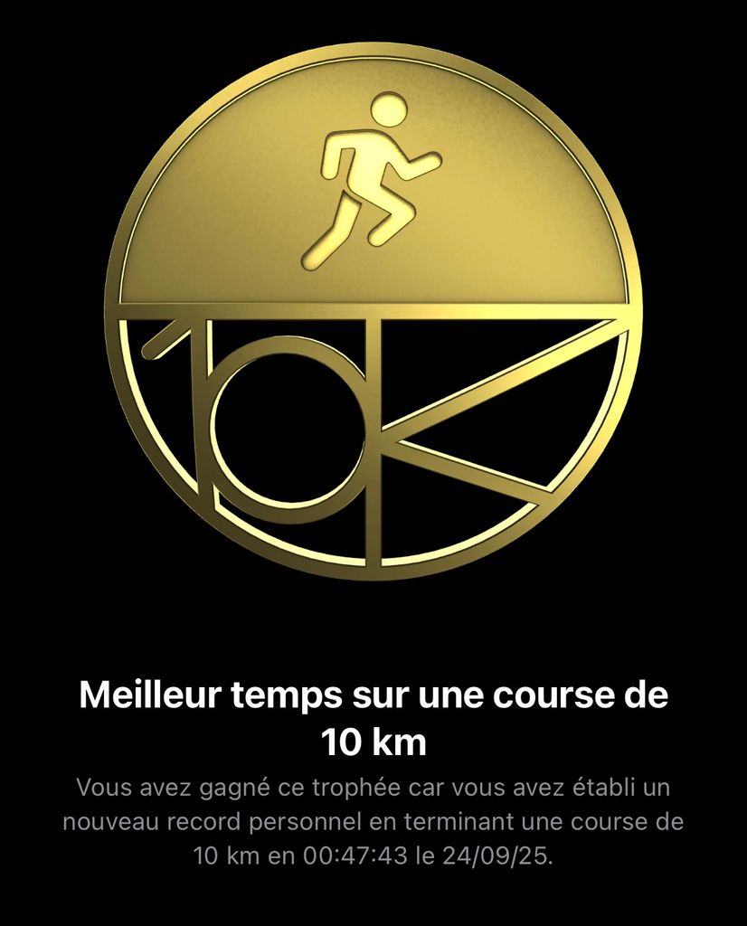 Mais je boucle les 10km en 47'43" malgré tout, mon meilleur temps, à 5 secondes près