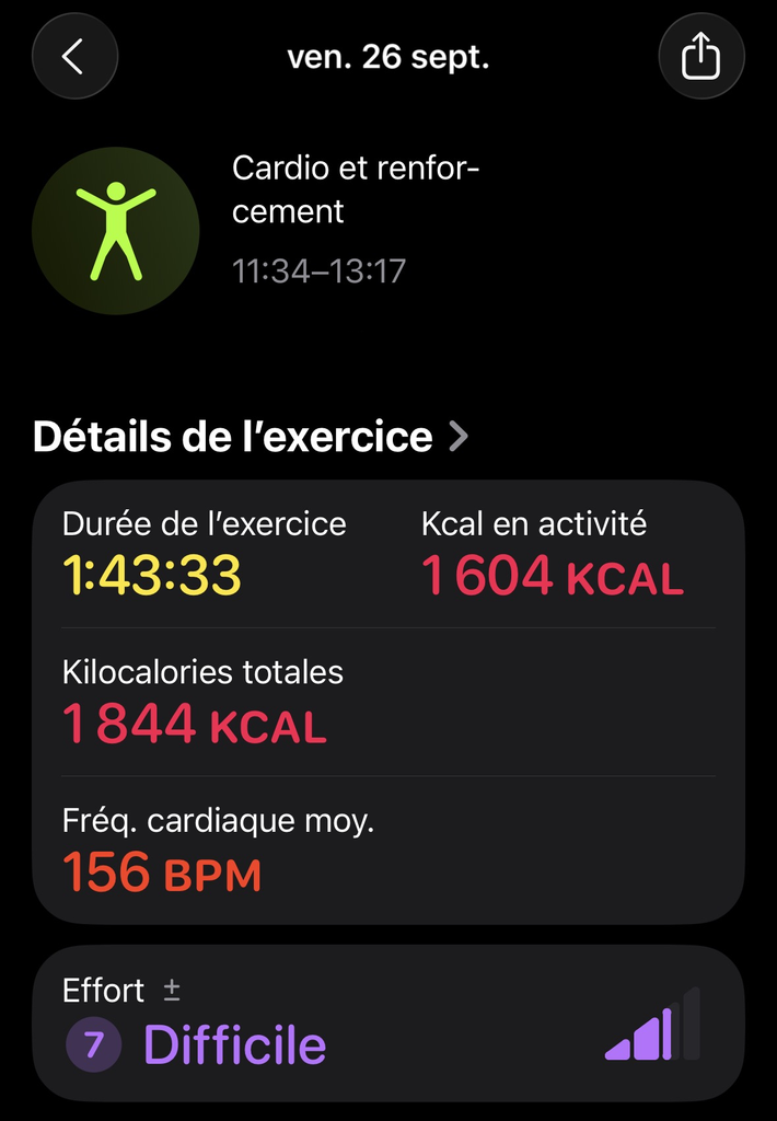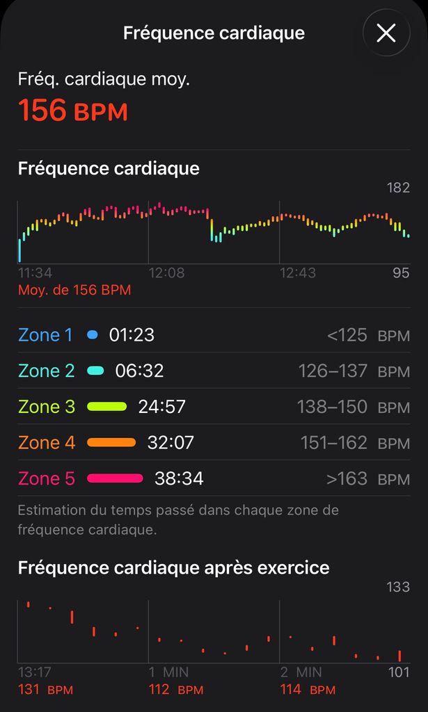 Par contre j'avais oublié mon cardiofréquencemètre Polar, donc j'ai la séance que sur mon Apple Watch Ultra