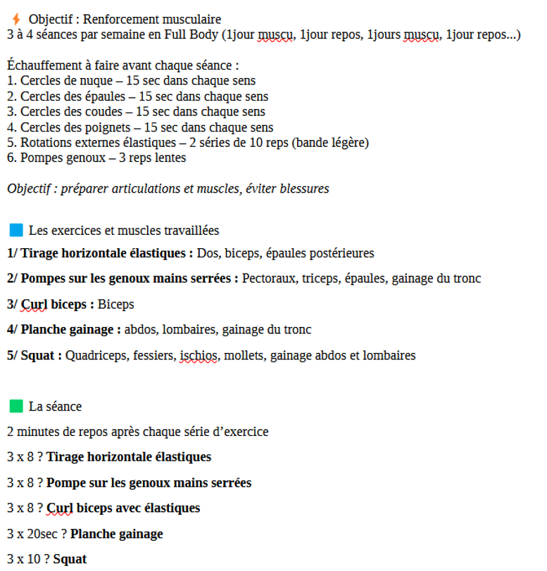 Ouai, il m’a sorti plein d’exercices. Après, j’ai sélectionné et peaufiné. Je vois mal la belle-doche taper des extensions triceps derrière la nuque.