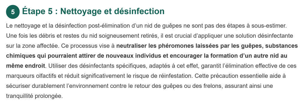 D'autres peuvent revenir attirés par les traces chimiques pour refaire un nid près de l'ancien, c'est pour ca que c'est conseillé de bien savonner/désinfecter le point de fixation de l'ancien nid