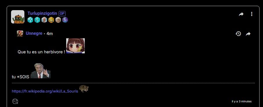 Poste souvent au début des threads, pose un ton absurde, déroutant, théâtral.