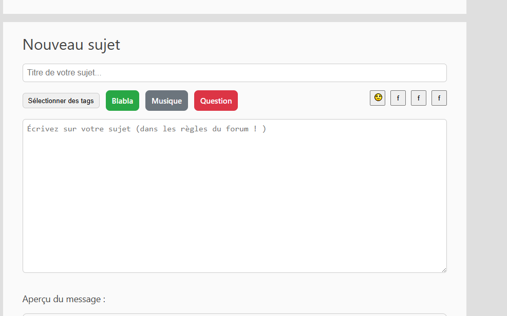 Sur le formulaire des topics (3 tags max pour éviter les abus, si tous les tags sont désactivés, le tag Blabla se réactive automatiquement) :