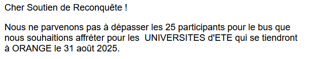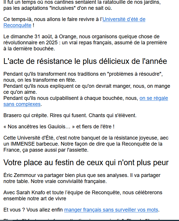 Oui, j'ai dû recevoir ça aussi, parmi les nombreux mails d'eux... Un autre que j'adore, c'est celui où Knafo parle des militants qui travaillent "d'arrache-pied" depuis longtemps pour cette univ' d'été...
