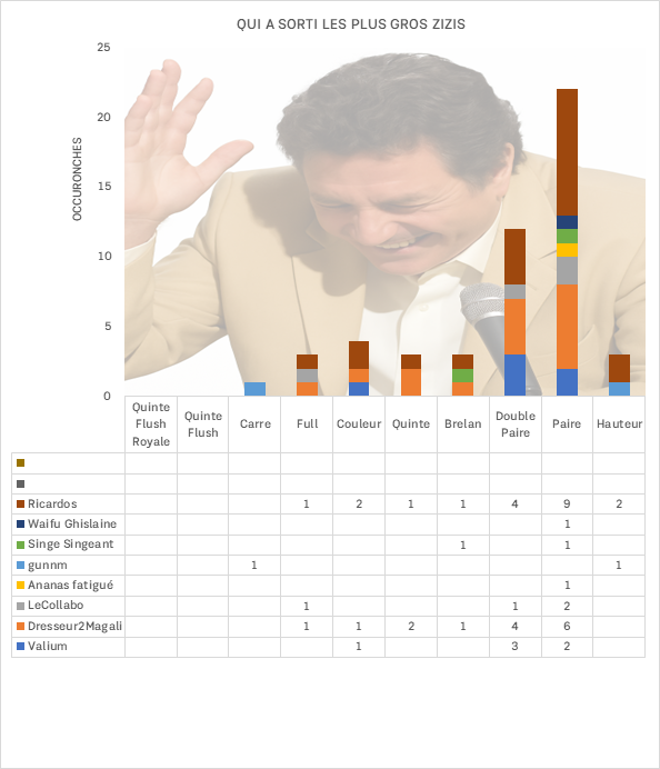 7ème : Waifu Ghislaine déchiré par Ricardos avec Paire de Roi Hauteur Dame contre Paire de Sept Hauteur Dame à l'issue de la manche n°3