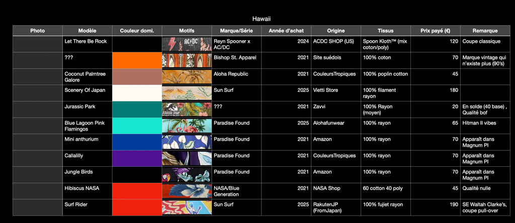 Ton excuse pour ne pas faire le même tableur pour ta collec de chemises hawaïennes ?
