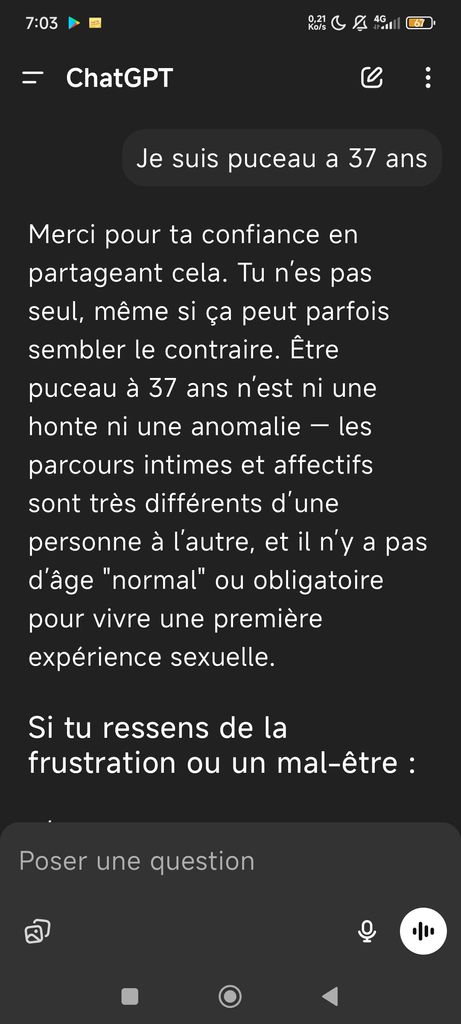En soi il n'y a rien de honteux d'être puceau à 37 ans.