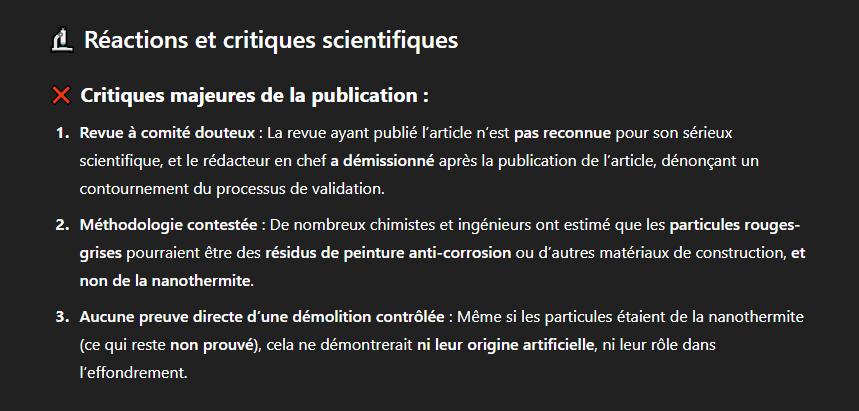 5. Le rapport NIST a été critiqué pour manque de transparence (les modèles de simulation n’ont jamais été rendus publics).