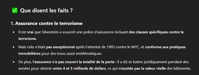 Larry Silverstein a fait assurer quelques mois avant les tours du WTC et dans les clauses, il était question d'assurer le bâtiment contre de potentiels attentats, sauf que ce n'était pas la seule clause, c'était une parmi d'autres...