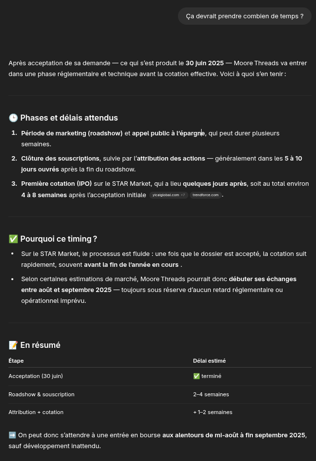 L'introduction en bourse devrait etre pour cet été, surement vers septembre d'après ChatGPT
