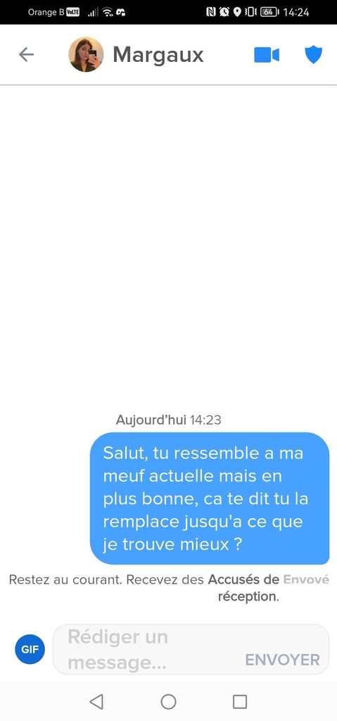 "salut, tu ressemble a ma meuf actuelle MAIS EN PLUS BONNE"