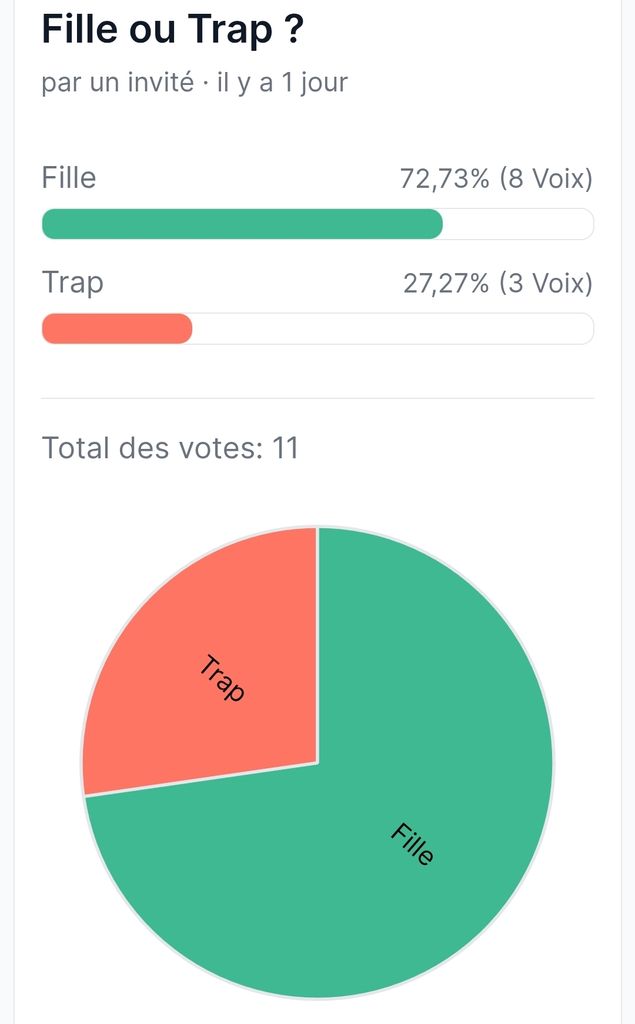 11 votes, 8 pour "fille" et 3 pour "trap", ça y est : c'est l'heure de la solution !