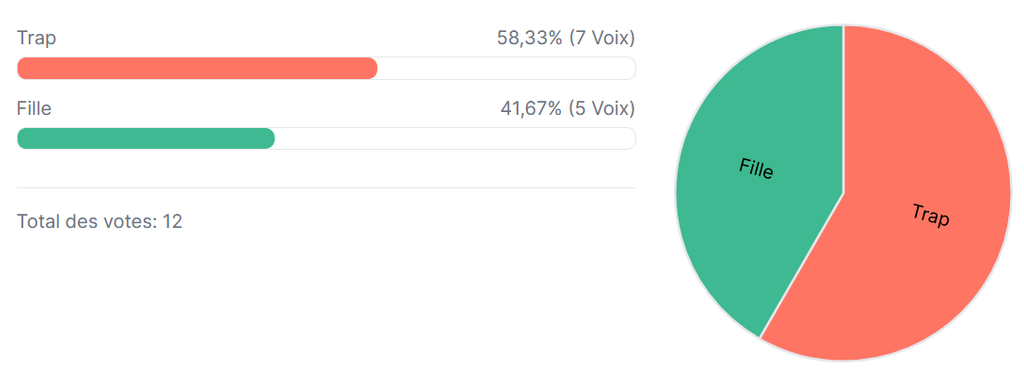 12 votes, 7 pour "trap" et 5 pour "fille", ça y est : c'est l'heure de la solution !