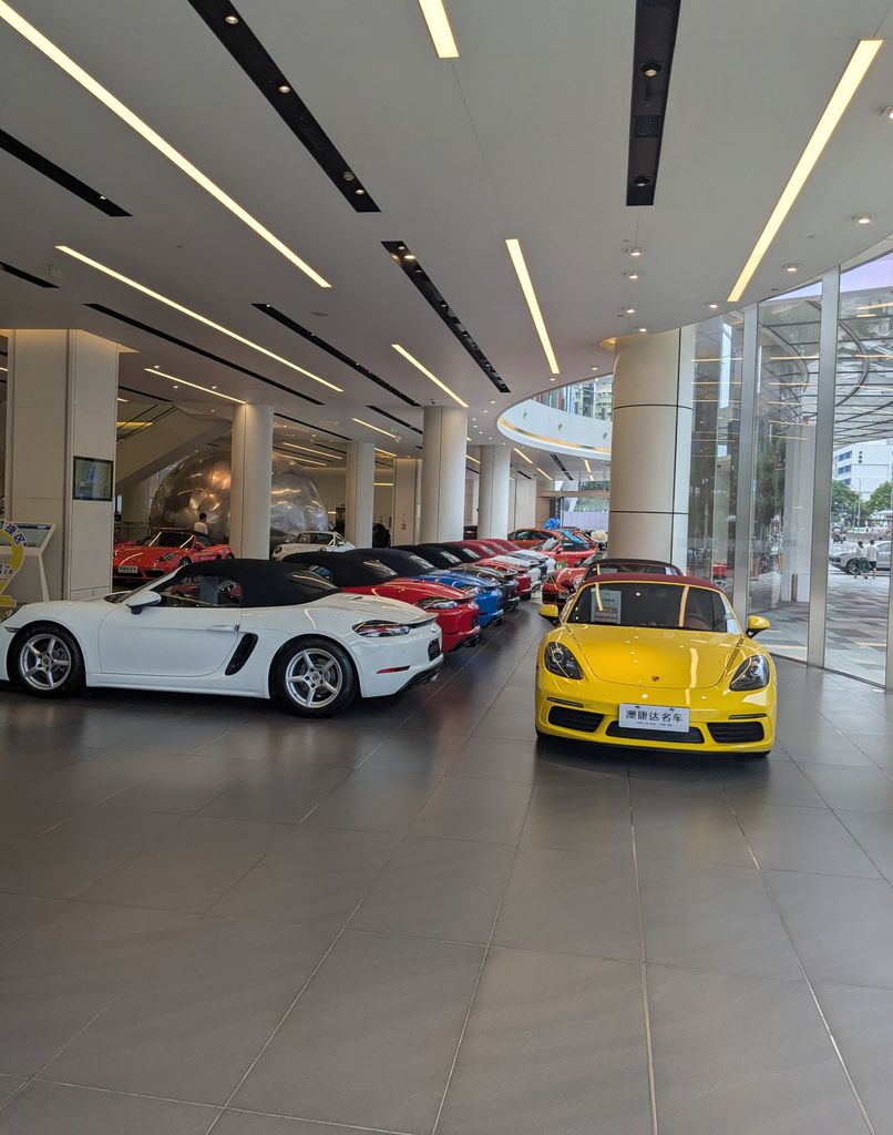 Aujourd'hui on a fait un détour par un magasin de voiture parce que mon fils adore ça.