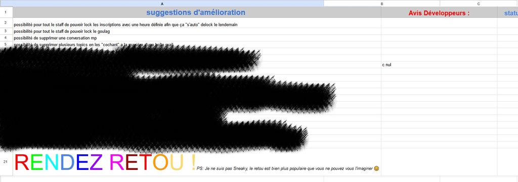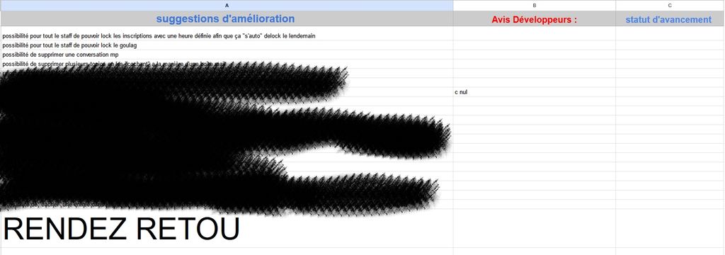 On a un p'tit doc partagé dans le staff pour noter les améliorations qu'on aimerait voir apparaitre.