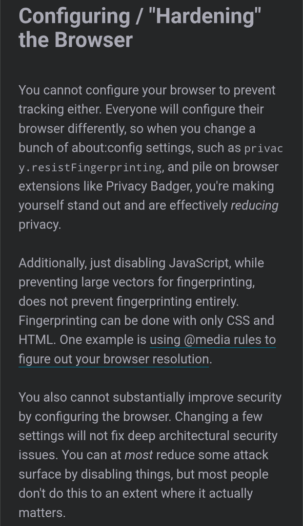 l'op est un débile qui a lu un article sur le "fingerprinting" et qui du coup se dit que la meilleure chose à faire c'est d'utiliser le navigateur le plus normie possible qui n'est pas google