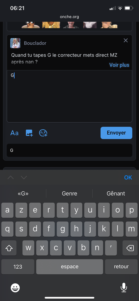 Quand tu tapes G le correcteur mets direct MZ après nan ?