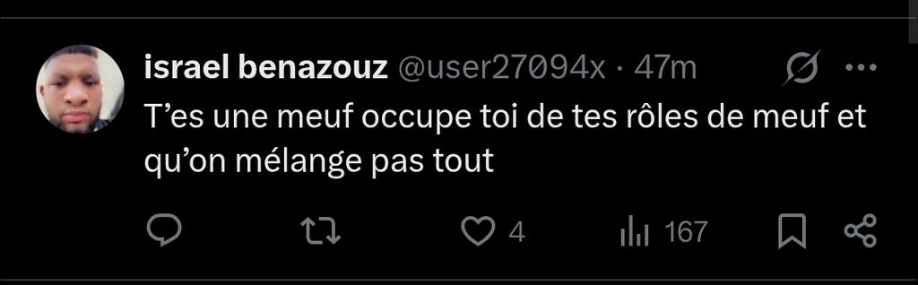 C'est une réaction saine d'être misandre quand tu te fais dominé depuis des siècles non ?