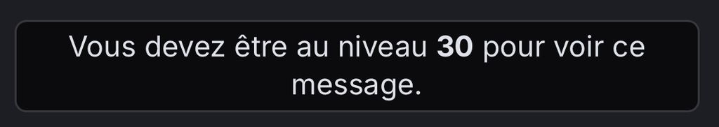 Vous devez être au niveau 30 pour voir ce message.