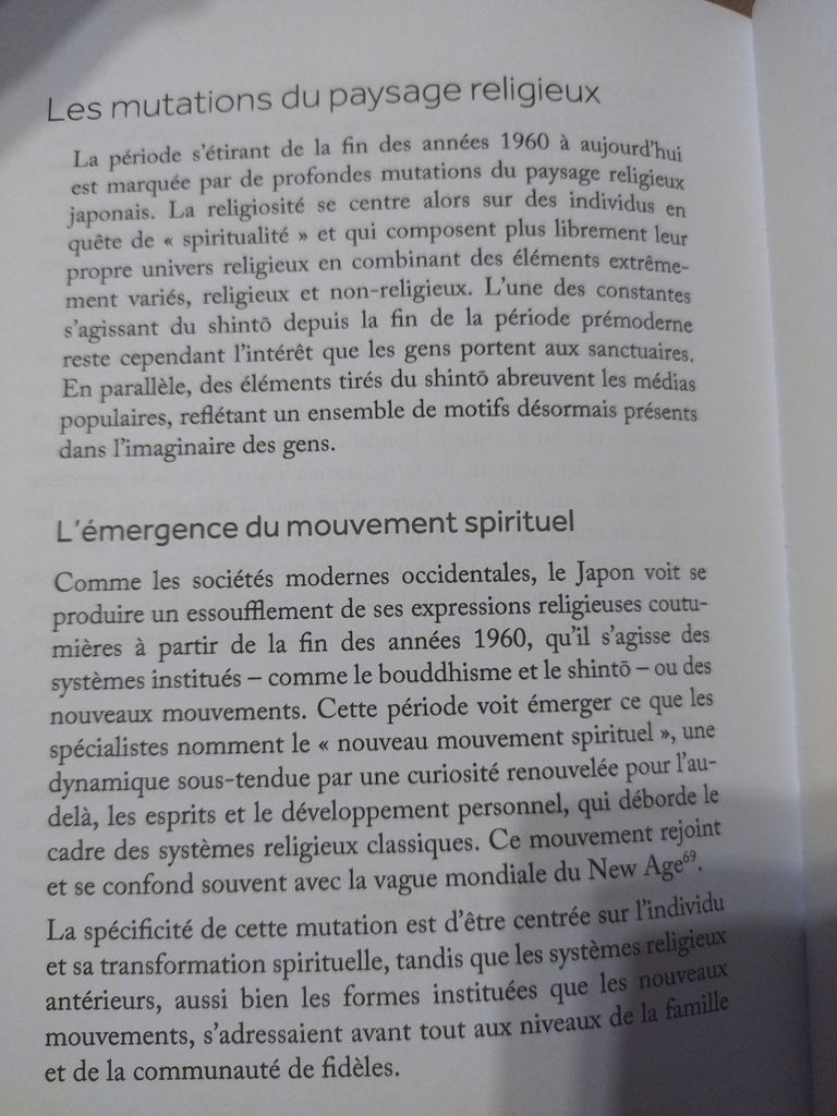 ben si c'est une religion à proprement parler, y'a des concepts clés, des visées spirituelles, un corpus rituel, des symboles, des prêtres et représentants, etc. qui au japon aujourd'hui croit encore au respect et aux offrandes aux kamis, aux purifications rituelles, au culte de l'empereur ???? les matsuris ils survivent seulement parce qu'ils ont une dimension festive et que les japonais sont des moutons, c'est une croyance vidée de sa spiritualité c'est tout à fait déprimant