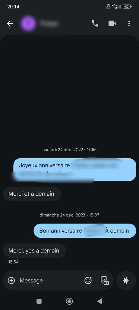 perso mon frère je lui envoi toujours un message d'anniversaire a minuit pile