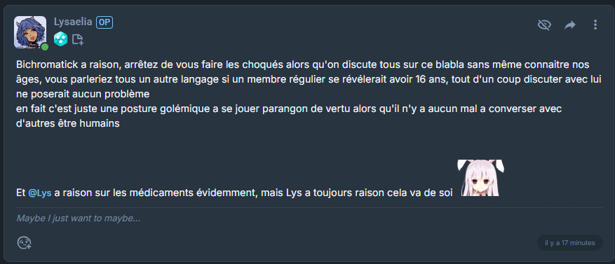 elle m'envoie ça sur discord en me disant qu'elle est bannie