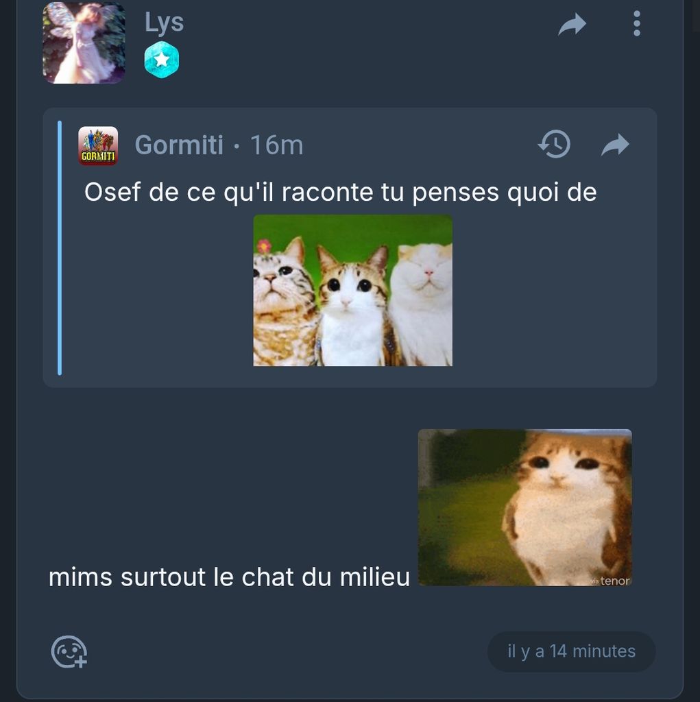 Si je te spam de photo chat oiseau tu vas chialer ?