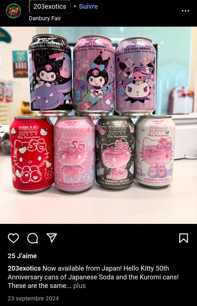 des cannettes Kuromi et Hello Kitty y'en a au Kam Yuen près de Sainte-Catherine