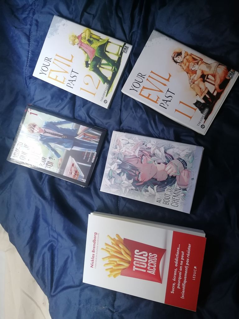 Quatre seinens et un livre qui parle des mécanismes de l'addiction