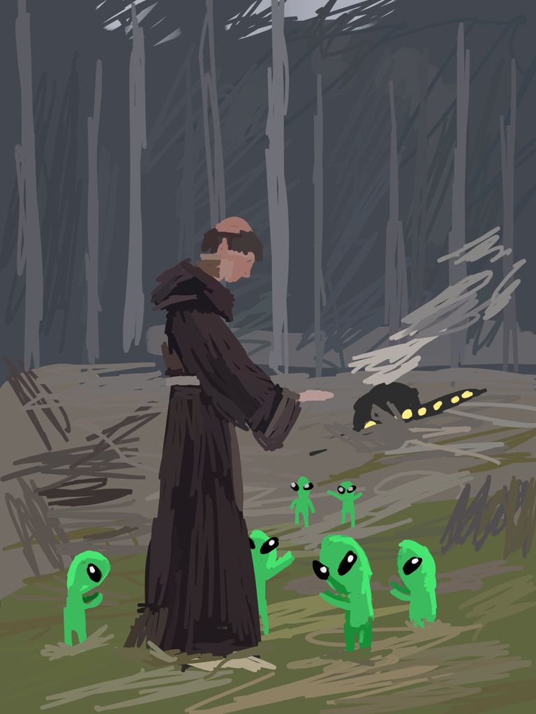 qui baptise les petits extraterrestres qu'il a trouvé dans la forêt