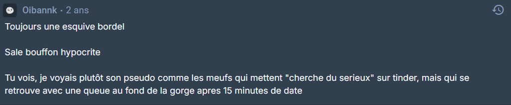 Il est venu m'insulter il y a genre 2 jours