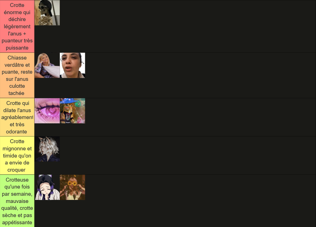 tu veux que je t'ajoute a la tierlist ? laisse moi le temps de méditer pour créer une image spirituelle de ta merde