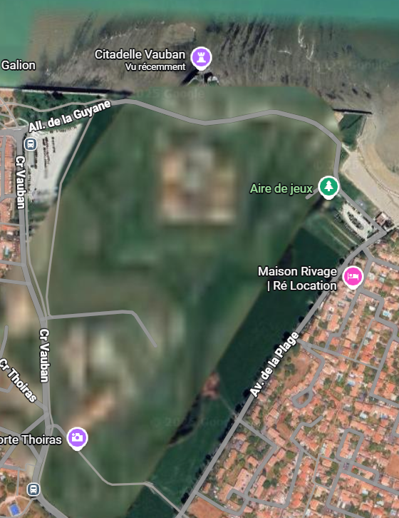 je voulais dire qu'on a pareil en France en prenant l'exemple de la citadelle de saint-martin-de-ré mais visiblement google maps doit flouter l'image satellite