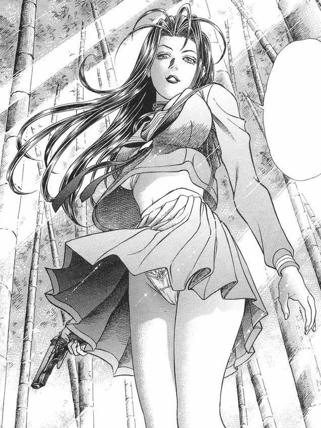 A partir du volume 3 y'a des scènes porno, le volume 8 est très porno aussi et tu la revois toute nue dans d'autres volumes en fait c'est le personnage de Mitsuko qui est folle du cul et apparemment devoir participer à un jeu mortel ça l'excite et ça lui donne envie de se mettre à poil et de baiser