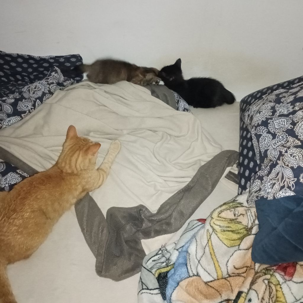 je viens de lui faire un bol de croquettes et là je me fais craquer les feets par un des chatons