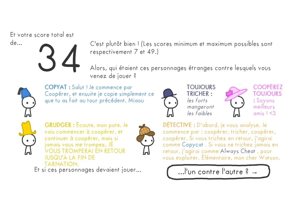 Un khey de village (Meato) m'a partagé ce site hier ç'est sympa c'est sur le dilemme du prisonnier avec des pièces on peut simuler contre des PNJ puis avec eu c'était marrant