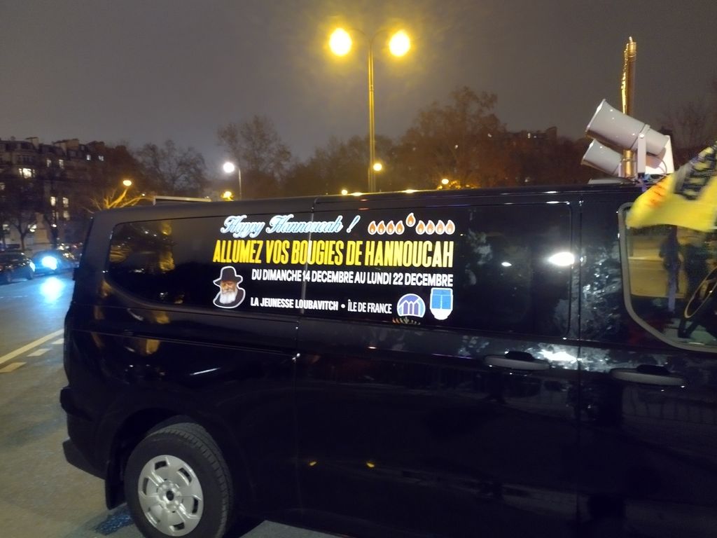 je me promenais au hasard j'arrive au champ de mars, j'entends de la musique, je vais voir et je vois une menorah géante et plein de voitures avec des panneaux happy hanoukkah et y'a Rachida Dati et le grand rabbin de Paris qui allument les deux premières bougies sur une musique pop-techno en hébreu avec plein de juifs qui dansent