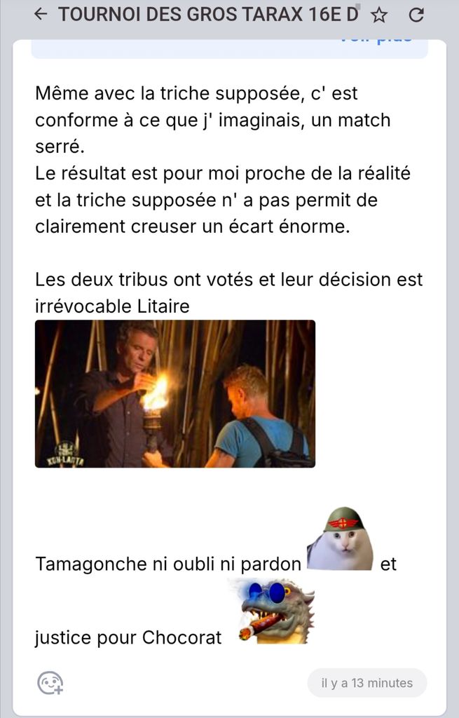 Chaud ce niveau d'anti-jeu et de rancune... Surtout que que Chocorat ç'est pas ma faute si il a été ban
