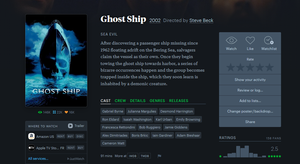 Je ferai ça mais je mettrais pas Ghost ship dedans