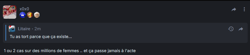 1 ou 2 cas sur des millions de femmes .. et ça passe jamais à l'acte