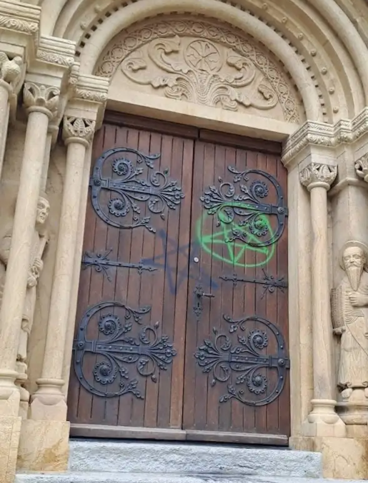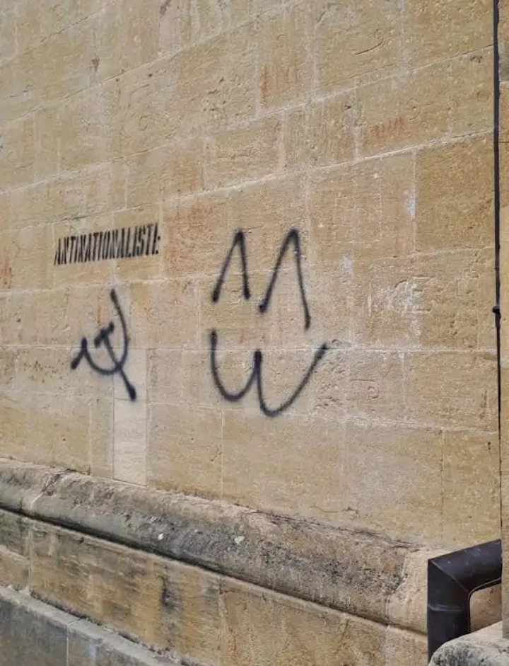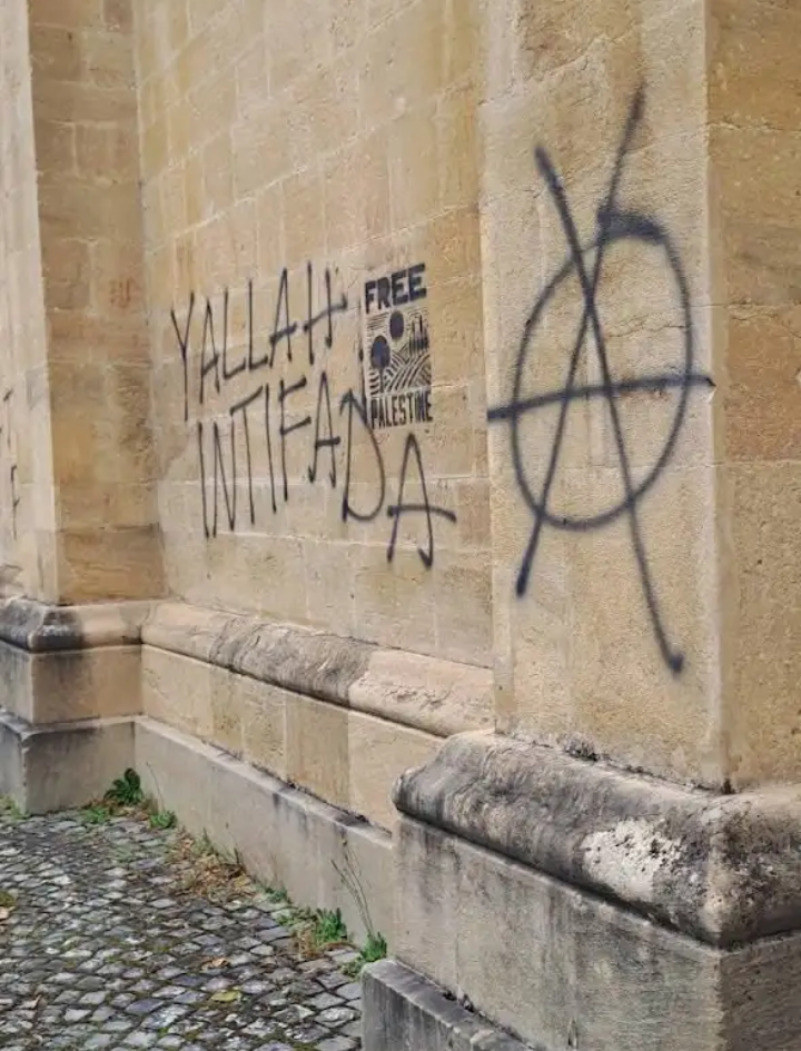 Les gauchos qui tag des free Palestine sur une collégiale en Suisse.... Même pas capable de faire ça sur une synagogue.