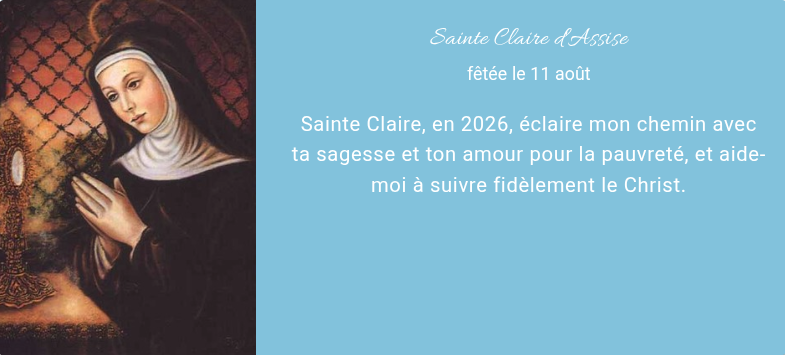 c'est l'amie de saint François d'Assise, elle a fondé l'ordre des clarisses, c'est une très grande sainte