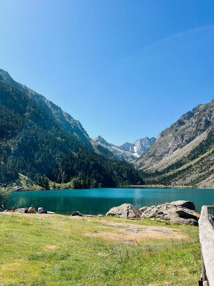 le lac de Gaube, dans les Pyrénées, je retrouve pas mes photos mais j'ai trouvé celle-là du lac d'Estom auquel on arrive après une jolie randonnée pleine de myrtilliers sauvages