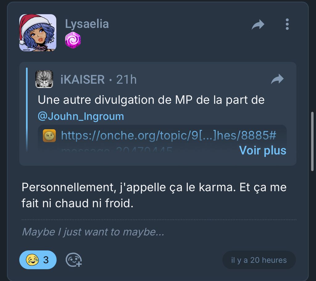 J'aurais rep aussi comme Jouhn perso, mais genre après tu regrettes toujours d'attaquer ce genre de personnes, cf le post de niknak