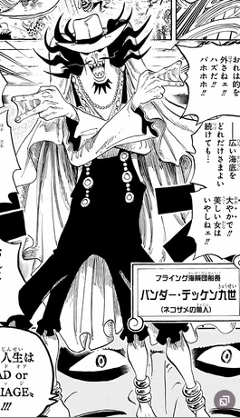 "Il a tendance à sur-réagir à certaines situations qui le surprennent, comme lorsqu'il a réagi choqué et déprimé quand Shirahoshi a refusé son offre de mariage parce qu'il "n'est pas son type" et a décidé de pleurer indéfiniment, réciter un haïku, et raser le sommet de sa tête par dépression."