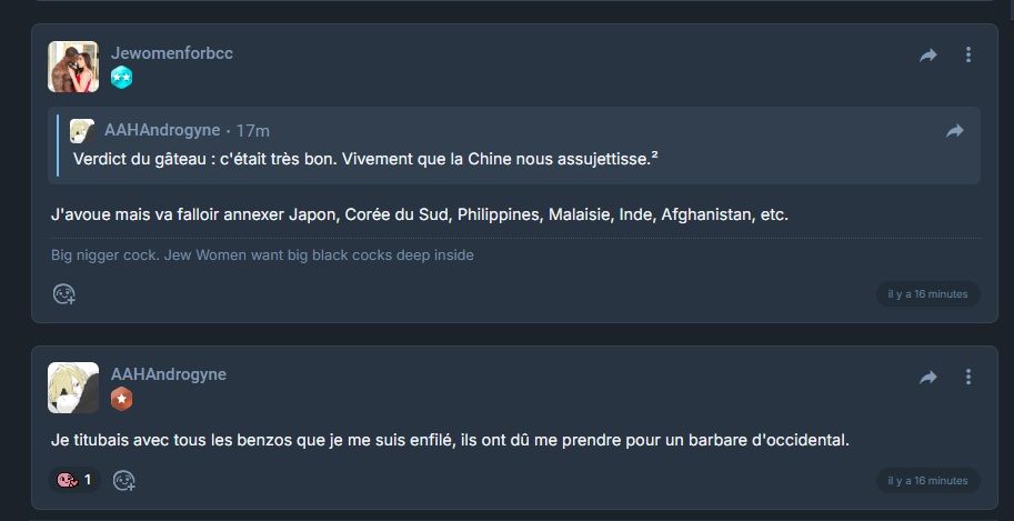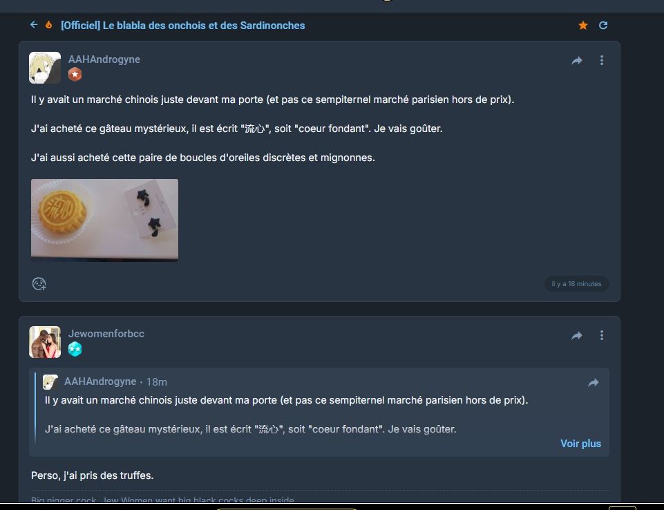 Attention, c'est super poussé, j'ai dit que je vais poster un truc de bouffe, j'ai répondu au nouveau que je mange des truffes et il nous parle ensuite de Chinois et Occidentaux barbares mais c'est moi qui réponds au hasard.