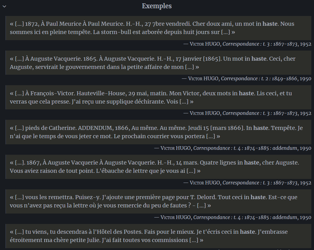 je trouve pas ça très beau et j'avais un certain attachement à l'ancienne version mais au niveau fonctionnel je me rends à l'évidence que c'est quand même supérieur, ils ont inclus les définitions du wikitionnaire, toutes les définitions sont sur la même page au lieu de devoir chercher dans chaque dictionnaire un par un, il y a beaucoup plus d'exemples d'utilisation qu'avant (même s'ils ont été visiblement obtenus de manière automatisée et ça donne des trucs un peu louches parfois