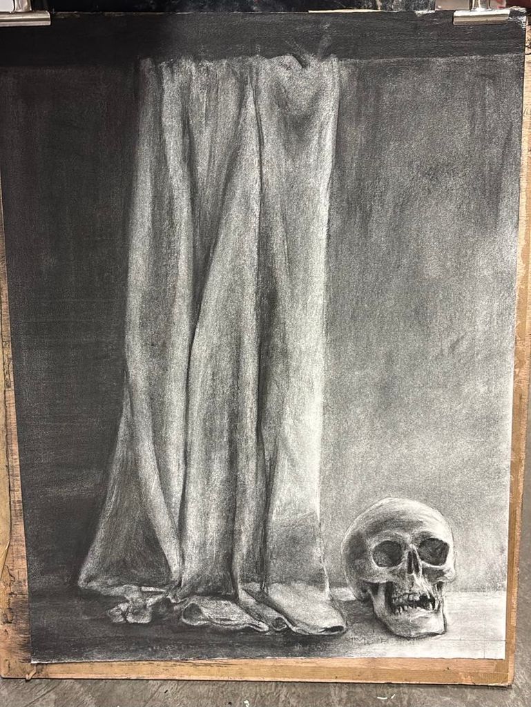 fusain essuyé sur feuille mbm fête