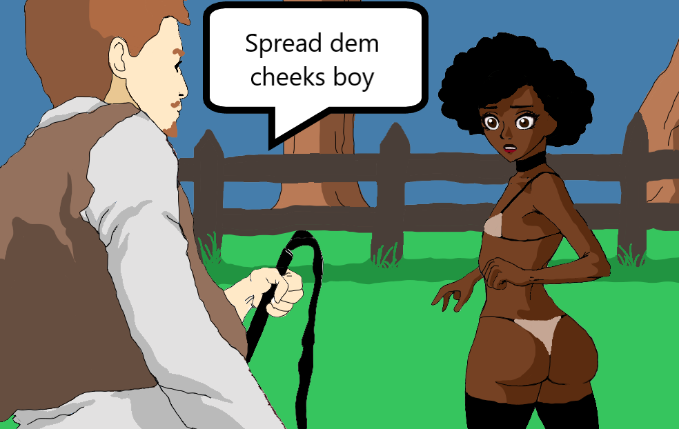 Mais qu’est-ce qu’y s’passe là, lui habillé comme une vache, le cul tout levé, les hanches large comme ça? Mon Dieu, au lieu d’aller ramasser du coton....C’est son lait, ça? Hé ben, ce bougre-là, y mérite une bonne correction dans le champ des bucks, ça c’est sûr.