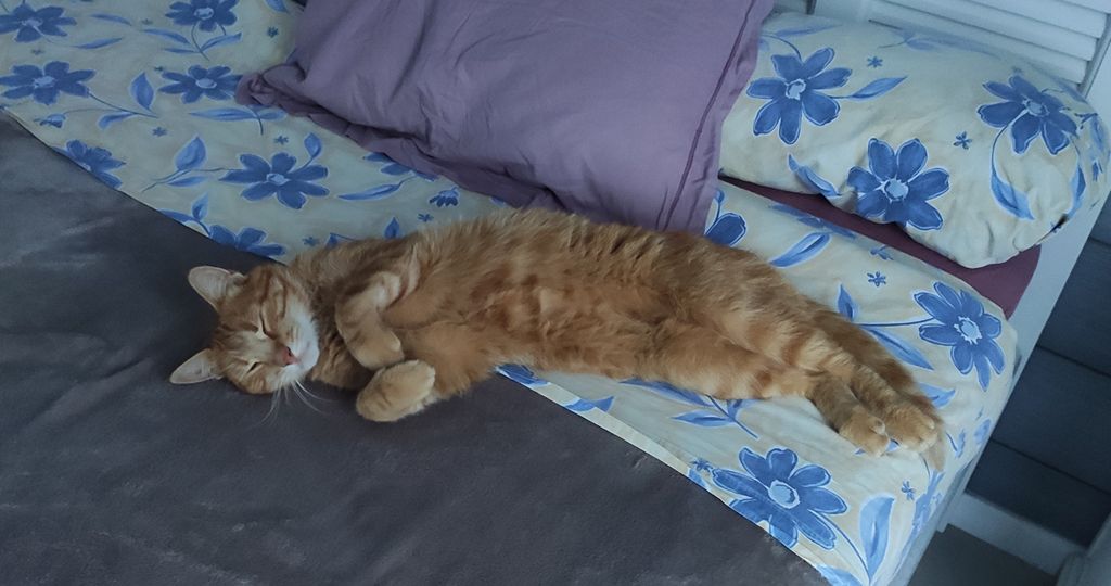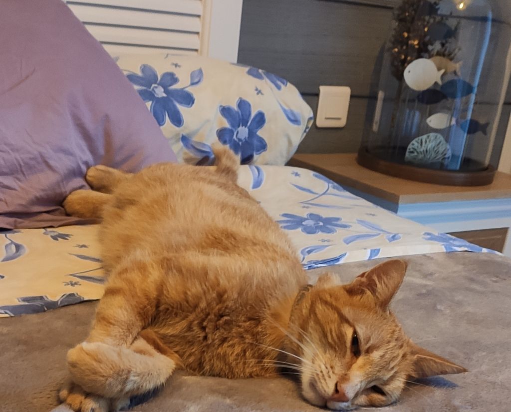Je vous présente Minou Roux dont j’ignore le vrai nom puisqu’il s’agit d’un chat qui me rend visite très régulièrement depuis un an et demi. Ce n’est pas un chat errant et il est en parfaite santé mais je ne sais pas à qui il appartient précisément