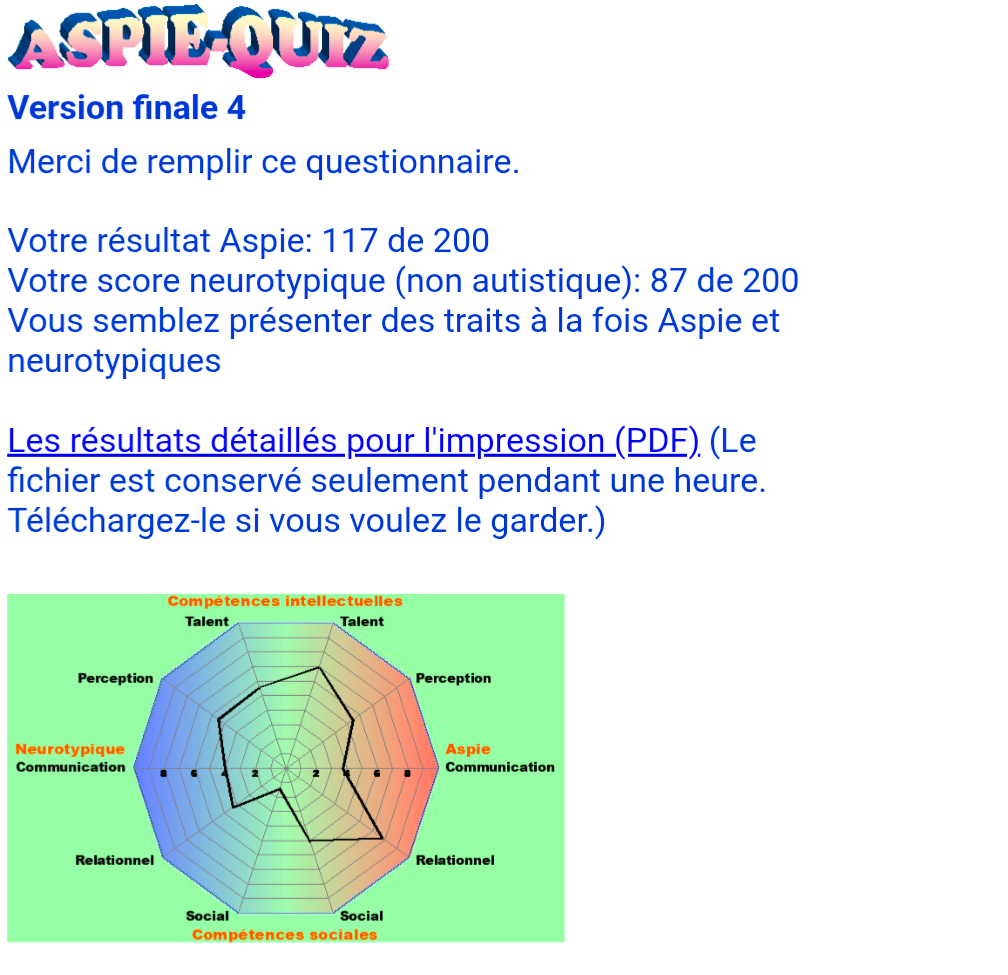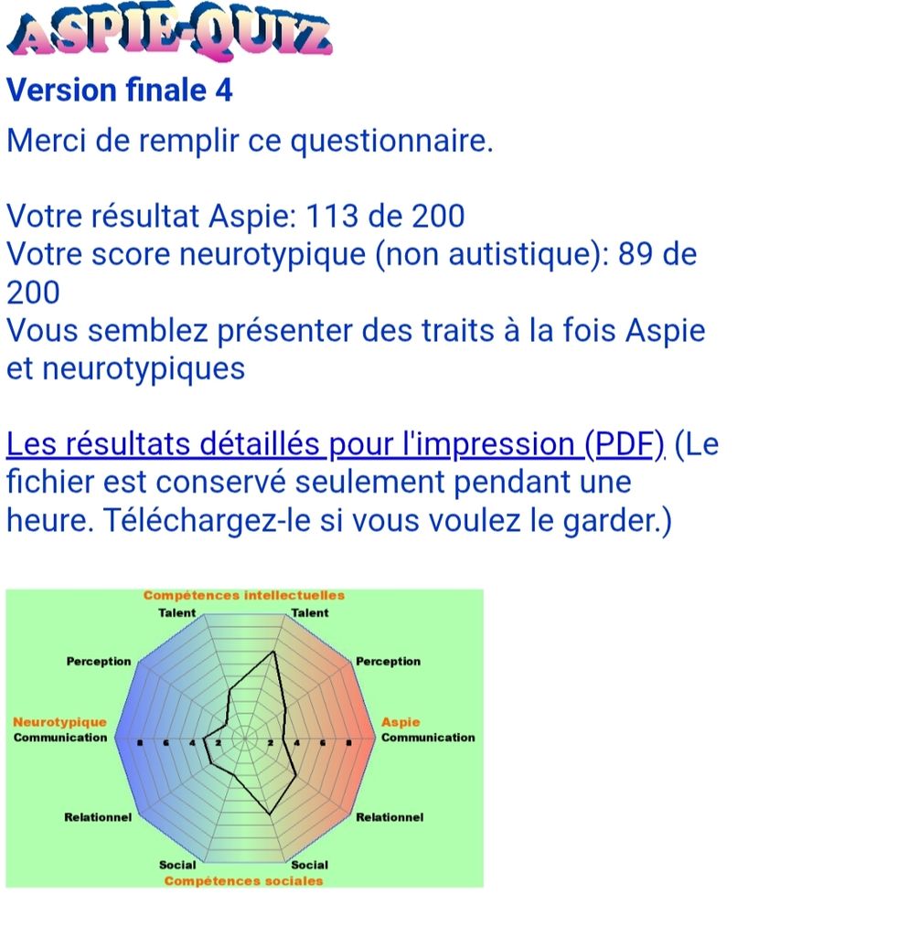 Je me pensais autiste, mais quand je vois les résultats de ton test